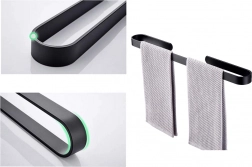 Praktikus és stílusos, 30 cm hosszú törölközőtartó mindennapos használatra. A fekete felület és a letisztult vonalak kiemelik a modern megjelenést, míg az alumínium test könnyű és rendkívül tartós nedvességgel szemben.