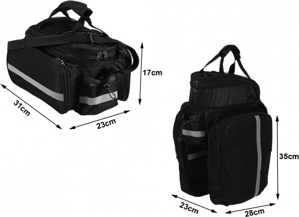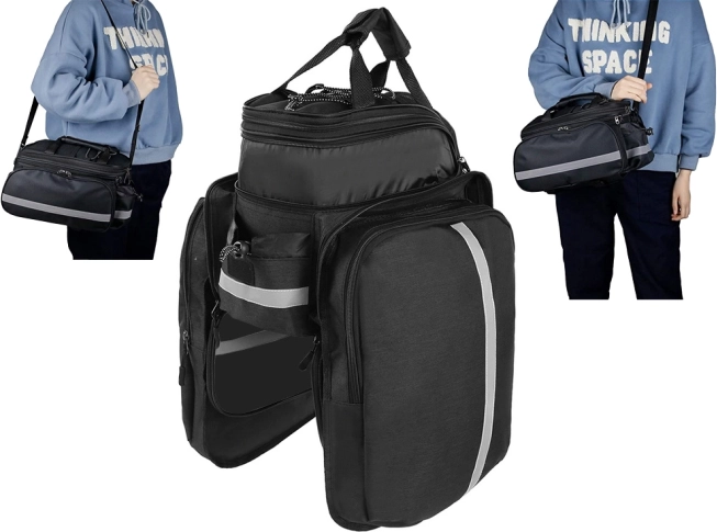 A biztonság fokozása érdekében a táska fényvisszaverő csíkokkal és esővédővel van felszerelve, amely a tartalmat kedvezőtlen időjárás esetén is megvédi. A teljes táska térfogata körülbelül 30 liter, amely bőven elegendő helyet biztosít minden kerékpáros igényére.