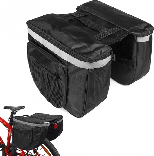 Ezzel a nagy kapacitású kerékpáros táskával könnyen szállíthatja a szükséges dolgokat. Úgy tervezték, hogy a kerékpártartóra illeszkedjen, és univerzális rögzítést kínál a tépőzáras pántokkal.