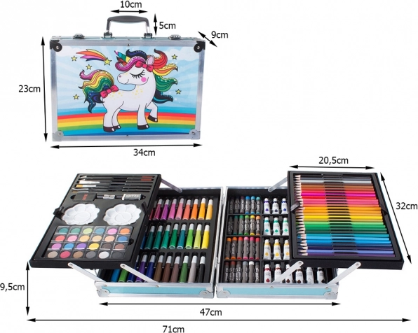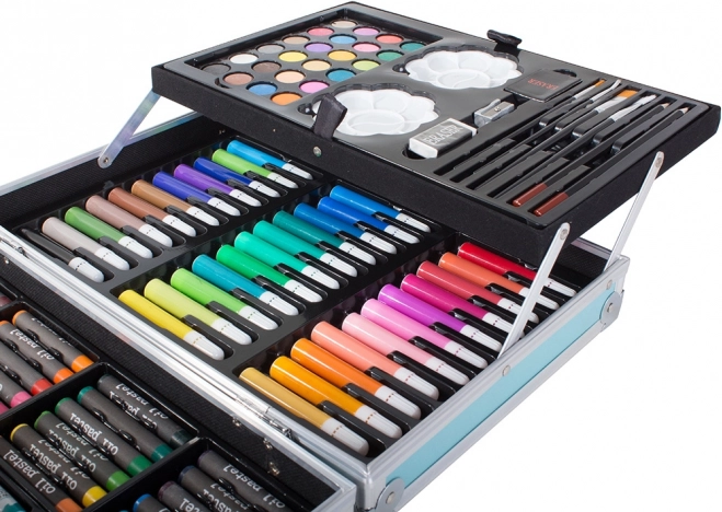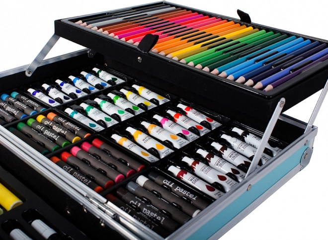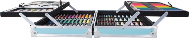 Élvezze órákig a szórakozást ezzel a kreatív készlettel, amely különböző médiákat kínál, mint például olajpasztellek, filctollak, akvarellfestékek és további eszközök. Minden, amire szüksége van egyedi műalkotások készítéséhez, a praktikus bőröndben rejlik, amely megkönnyíti a szállítást és az organizációt.