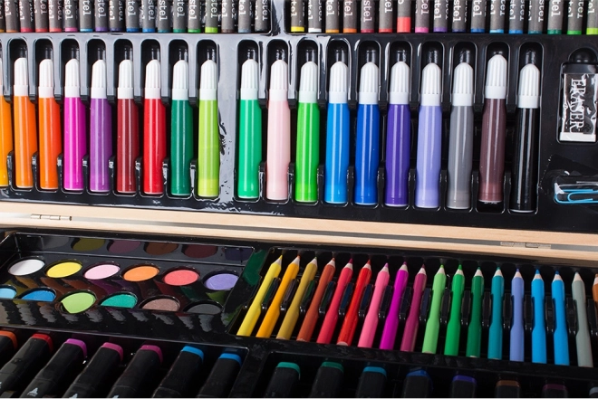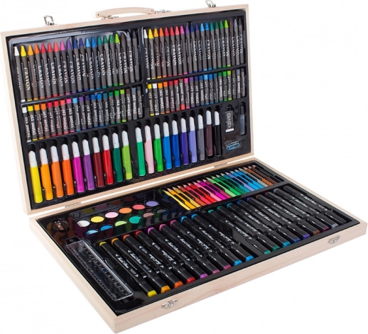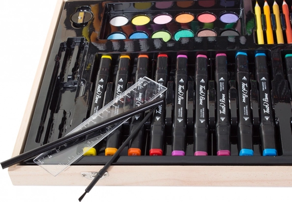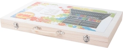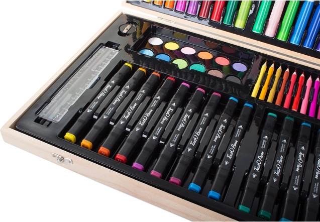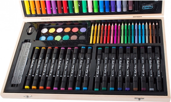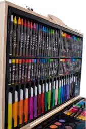 A készlet gondosan el van rendezve egy tartós fa tokban, ami biztosítja a könnyű hordozhatóságot és szervezettséget. Minden eszköznek megvan a maga helye a készletben, ami azt jelenti, hogy soha nem veszít el egyetlen kedvenc ceruzát sem. A művészi alkotások befejezése után egyszerűen mindent tárolni és őrizni tud a tokban.