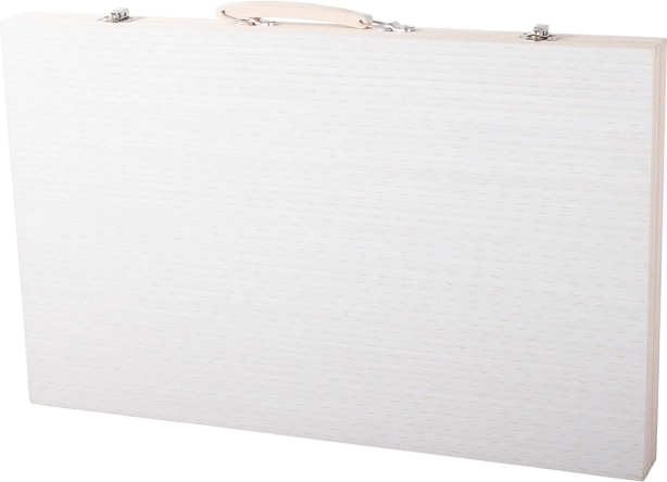 A fa tárolóláda nem csak védi, hanem könnyű hordozhatóságot is biztosít, így művészi kellékei mindig kéznél lehetnek.