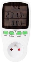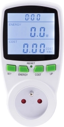 Ez a konnektorba dugható wattmérő ideális otthonokba és irodákba, ahol kézben szeretné tartani az áramfogyasztást. Az áttekinthető, háttérvilágított kijelzőn megjeleníti a feszültséget, áramot, teljesítményt, frekvenciát, a mérési időt és a költség becslését a megadott kWh ár alapján. A négy gombbal történő egyszerű kezelés napi szinten is kényelmes használatot biztosít.