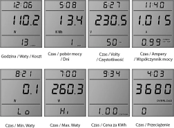 A nagy, háttérvilágított LCD és a négy gomb (SET, ENERGY, COST, UP) megkönnyíti a beállítást és a kulcsértékek olvasását, mint a feszültség, áram, teljesítmény, frekvencia és mérési idő.