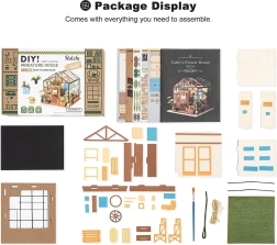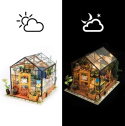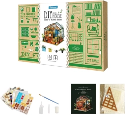 Miniatűr üvegház a ROBOTIME-tól részletgazdag kreatív építőkészlet, amellyel kellemes alkotói pillanatokat élhetsz át, és otthonos, LED világítással ellátott dekorációt készíthetsz. A csomag mindent tartalmaz az összeállításhoz – ragasztót, festékeket, ecsetet és apró szerszámokat. A modell gazdag részleteivel, élethű megjelenésével és a építés relaxáló élményével tűnik ki.