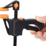 Ez a könnyű és tartós, egykezes szorító ideális asztalosmunkákhoz, szereléshez és DIY projektekhez. A gyorsszorítós csúszó mechanizmus kényelmes egykezes kezelést tesz lehetővé, a gumírozott ravasz pedig segít a szorítóerő finom adagolásában. A felső pofa átszerelésével könnyedén módosíthatja az üzemmódot, és a szerszámot támasztóként használhatja.