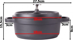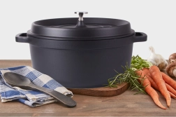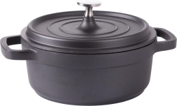 Praktikus, 2,2 l űrtartalmú edény tartós öntött alumíniumból, tapadásmentes bevonattal a könnyű főzéshez és sütéshez. Alkalmas minden tűzhelytípushoz, beleértve az indukciót is, valamint sütőbe is tehető. Gyors felmelegedést, egyenletes hőeloszlást és biztonságos, ergonomikus fogókat kínál.