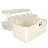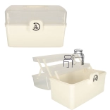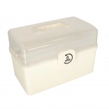 Az átlátszó fedél segíti a szükséges dolgok gyors megtalálását anélkül, hogy fel kellene nyitnia az adagolót. A praktikus fogantyú lehetővé teszi a könnyű szállítást nemcsak otthon, hanem utazás vagy kirándulás során is. Belső felszereltsége magasságban állítható elválasztókat tartalmaz a jobb rendezés érdekében.
