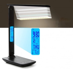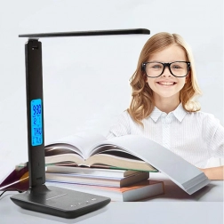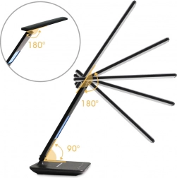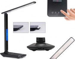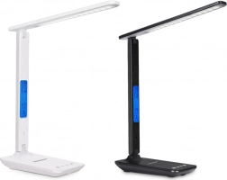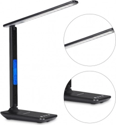 Modern LED asztali lámpa érintésvezérléssel, QI vezeték nélküli töltéssel és USB-porttal – ideális tanuláshoz, olvasáshoz és éjjeli fénynek. 3 fényhőmérsékletet kínál (meleg, semleges, hideg), 5 fényerőszintet és multifunkciós LED kijelzőt idővel, dátummal, hőmérséklettel és ébresztővel. Az állítható karnak és a forgatható kialakításnak köszönhetően a fényt pontosan oda irányíthatja, ahol szükség van rá.