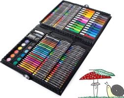 A készlet tartalma: 48 viaszpasztell, 48 olajpasztell, 24 filc, 24 színes ceruza, 12 akvarellfesték, ecset, paletta, hegyező, radír, ragasztó, korrektor, gemkapocs és 5 lap A5-ös papír. A gazdag felszereltségnek köszönhetően könnyedén készíthetsz rajzokat, illusztrációkat és festményeket, miközben fejleszted a kreativitást és a finommotorikát.