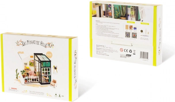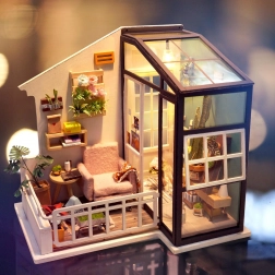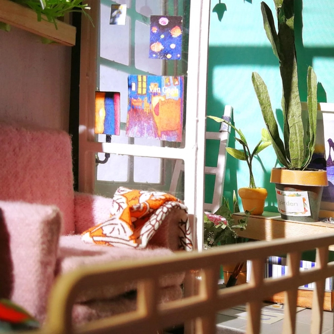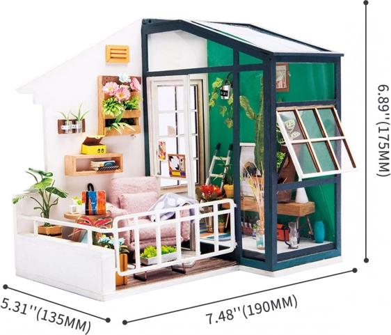 A Robotime-Rolife DGM05 készlet egy gyönyörű ház erkéllyel. Képzeld el, hogy egy otthonos kanapén ülsz a meleg nap alatt, és könyvet olvasol egy csésze kávéval. Milyen élő kép!
