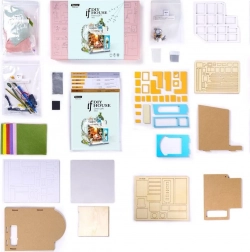 A csomag tartalmazza az építőkészlet elemeit, ragasztót, festékeket, ecsetet és részletes útmutatót. Az ollón kívül minden szükséges eszközt megtalálsz a dobozban, hogy az összeszerelés a lehető legegyszerűbb legyen.