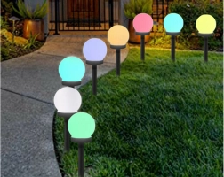 A napelemes kerti RGB gömbök tartós anyagokból készültek és belül LED diódát tartalmaznak, amely különböző színekben világít, RGB hatást teremtve. Ezek a lámpák nappal napelem segítségével töltődnek és a tárolt energiát este világításra használják. Előnyük a hagyományos energiaforrásoktól való függetlenségük, a beépített napelemek hatékonyan hasznosítják a napenergiát.