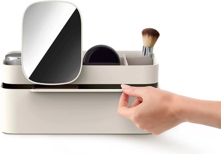 - Áttekinthető rendszerezés – 10 rekesz és 4 mélyebb szekció különféle kozmetikumoknak