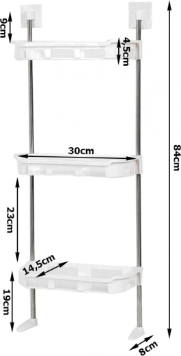 Praktikus, háromszintes WC fölötti rendszerező, amely maximálisan kihasználja az eddig kihasználatlan helyet, és mindent kézre tart. 3 tágas polcot, egyszerű falra szerelést és kompakt méreteket kínál, ideális kis fürdőszobákba. Univerzális kialakításának köszönhetően konyhában vagy mosókonyhában is megállja a helyét.