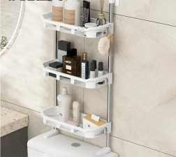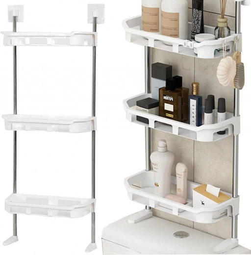 Tegyen rendet a fürdőszobában az okos, WC fölé helyezhető állvánnyal. A három mély polc elfér rajta a kozmetika, a tisztítószer és a törölköző is, miközben értékes helyet szabadít fel a mosdón. A szerkezet stabil fémrudakat és tartós, fehér műanyag polcokat kombinál, amelyek könnyen tisztíthatók.