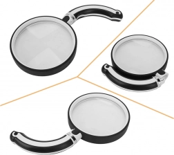 Klasszikus összecsukható nagyítót kínálunk 70 mm-es átmérővel, ideális mindennapi használatra. Ez a nagyító kiváló eszköz ékszerészek, numizmatikusok és elektronikai szervíztechnikusok számára is. Nagy nagyító üvege nagyon tiszta és könnyen olvasható képet biztosít.