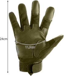 A TRIZAND univerzális, XL méretű, khaki árnyalatú taktikai kesztyűi ízületvédelmet, erős fogást és érintőképernyő-kompatibilitást kínálnak. A légáteresztő anyagnak, a megerősített tenyérrésznek és a szabályozható, tépőzáras mandzsettazárásnak köszönhetően kiválóan illeszkednek, védik a kezet a szennyeződésektől, és készen állnak sportra, outdoor és taktikai tevékenységekre.