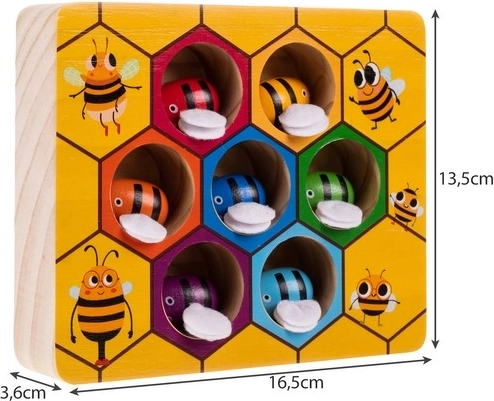 Minden méhecske saját színt és helyet kap a lépben. Játék közben a gyerekek természetes módon gyakorolják a színfelismerést, a logikát és a térbeli észlelést.