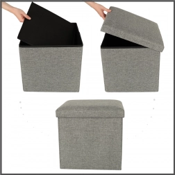 Összecsukható tároló puff praktikus megoldást kínál minden belső térhez, nyújtva tárolási lehetőséget és kényelmes ülőhelyet. Elegáns, könnyedén illeszkedik bármely helyiségbe, és akár 100 kg-ot is elbír. Az összecsukható kialakításának köszönhetően a tároló puff könnyen hordozható és sokoldalúan használható.