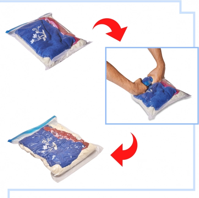 Szükséged van arra, hogy helyet takaríts meg a szekrényedben? Vákuum zsákjaink ruhákhoz azért vannak, hogy segítsenek neked! Ez a szett kilenc zsákot tartalmaz három különböző méretben (35x50 cm, 40x50 cm, 50x70 cm), amelyek tökéletesen megvédik a dolgaidat a portól, nedvességtől és kellemetlen szagoktól. Ideálisak nemcsak szezonális ruhákhoz, hanem törölközőkhöz, ágyneműkhöz, plüss állatokhoz és más textil termékekhez is.