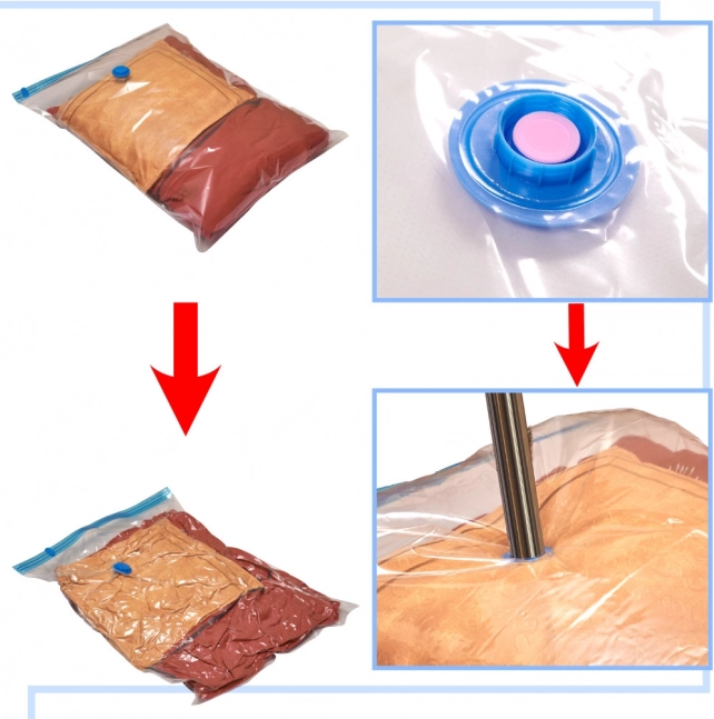 A vákuumos tárolózsákok remek módot nyújtanak arra, hogy helyet takarítson meg a szekrényben. Csak helyezze a ruhákat a zsákba, zárja le, és szívja ki a levegőt porszívóval. Tárgyai mérete csökken, és biztonságosan védve lesznek a külső hatásoktól.