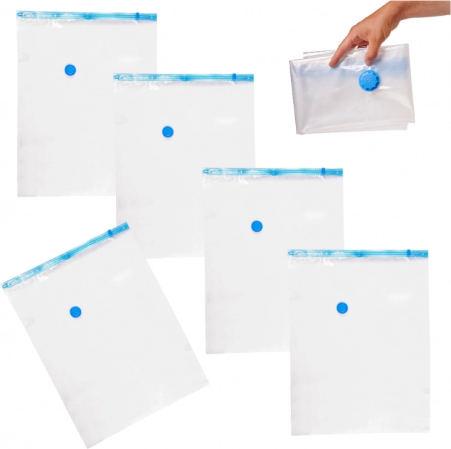 A csomag öt darab, 60 x 80 cm méretű zsákot tartalmaz, ideális különböző ruhák és anyagok tárolására.