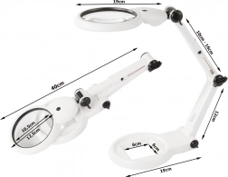 Az ékszerész asztali nagyítója tökéletes eszköz azok számára, akik részletes rálátást igényelnek a kis tárgyakra. A nagyító dupla nagyítást kínál - 8x az általános használatra és 12x az apró részletekhez. A kialakítása magában foglal 18 LED diódát, amelyek a meleg, hideg és semleges színek kombinációjával biztosítják az optimális megvilágítást.