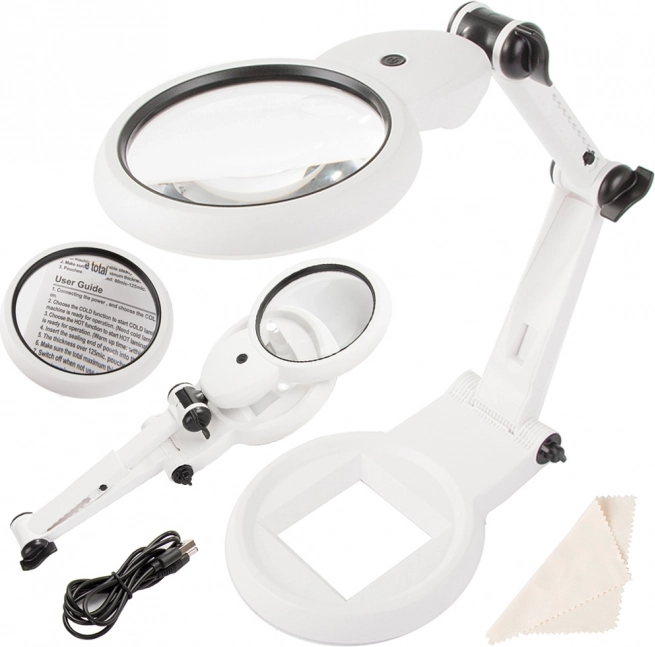A csomag tartalmaz egy gyárilag új összecsukható nagyítót, USB kábelt a tápellátáshoz és egy tisztítókendőt az eredeti csomagolásban.