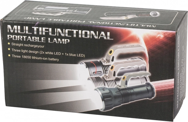 Az 18650 lítium-ion akkumulátorok hosszú üzemidőt biztosítanak, a lámpa pedig gumírozott töltőcsatlakozóval rendelkezik.