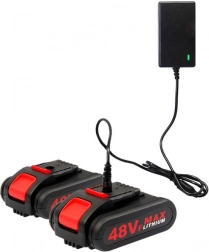 A csomag tartalmaz 21 V-os akkumulátort, töltőt, kulcsokat a penge beállításához, kenőanyagot, reszelőt és strapabíró tokot az egyszerű szállításhoz.