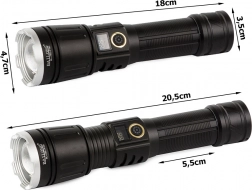 Fedezze fel ennek a kiváló minőségű zseblámpának az előnyeit, amely légialumíniumból készült és csúszásmentes felülettel rendelkezik. Powerbank funkcióval rendelkezik, ami azt jelenti, hogy vészhelyzetben töltheti mobil eszközeit. Erős zoommal, amely lehetővé teszi a keskeny fénysugár akár 1000 méter hatótávolságát, ideális eszköz nagy területek megvilágítására.
