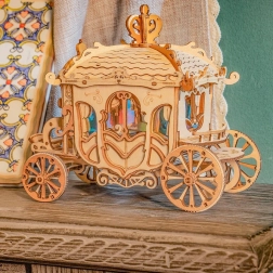 Építsen mesés dekorációt természetes fából. A ROLIFE 3D kirakó 92, lézerrel pontosan kivágott elemet kínál hárs rétegelt lemezből, amelyek ragasztó nélkül illeszkednek egymásba. A klasszikus hintó modell finom, vésett részleteivel tűnik ki, fejleszti a finommotorikát, a műszaki gondolkodást, és elkészülve stílusos dekoráció és eredeti ajándék is.