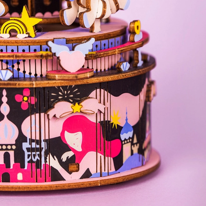 Robotime 3D összerakható Vidám körhinta egyedülálló körhintamodell, ami örömet okoz minden zenélőszekrény-rajongónak. Szerelje össze, és élvezze a jól ismert dallamot a mozgó részletekkel együtt.
