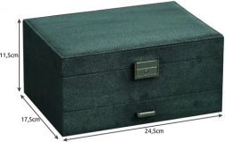 Ez a tágas bőrönd strapabíró anyagokkal is meg van védve, amelyek védelmet nyújtanak a sérülések, ütődések és por ellen. Elegáns dizájnja ezüst részletekkel klasszikus megjelenést és esztétikai vonzerőt kölcsönöz, így ékszerei csodálatosan néznek ki bárhol, ahol elhelyezi őket.