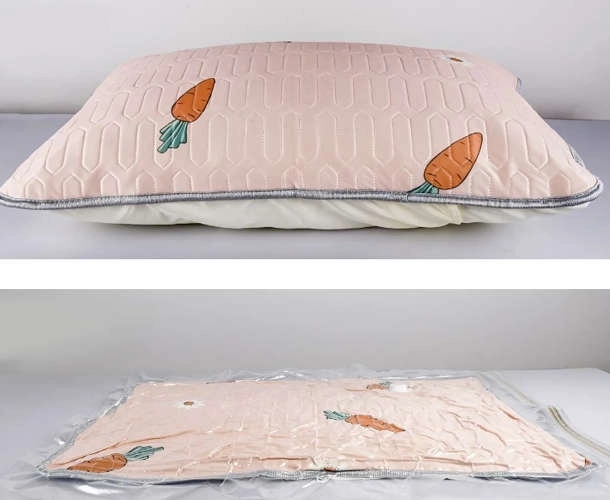 A vákuumzsákok a levegő kiszívása után jelentősen csökkentik az elhelyezett tárgyak térfogatát, így a szekrénybe és a bőröndbe jóval több ruha és ágynemű fér.