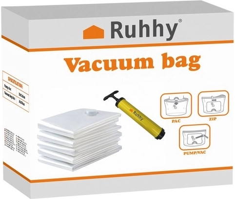 Tartson rendet otthon és nyerjen több helyet pillanatok alatt. A RUHHY vákuumzsákok könnyen tölthetők, hermetikusan zárhatók, és a levegő kiszívása után térfogatuk akár 80%-kal csökken. A tárgyak tiszták, szárazak és frissek maradnak, készen a következő használatra.