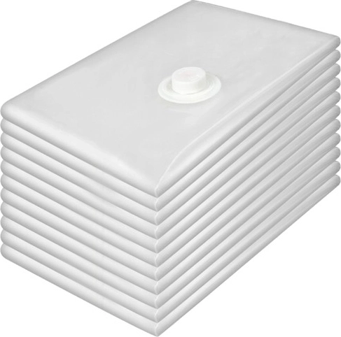 A szett 10 átlátszó, 50 × 70 cm-es zsákot és egy menetes, praktikus kézi pumpát tartalmaz a kényelmes levegőkiszíváshoz. A zsákok ruhákhoz, pulóverekhez, kabátokhoz, ágyneműhöz és textíliákhoz alkalmasak, és többször is használhatók.