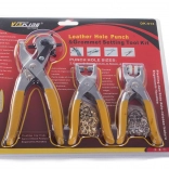 Ez a készlet tartalmaz három eszközt a bőrfeldolgozáshoz és tartozékokként 100 szegecset és 100 patentot. Az eszközök erős, deformációálló acélból készültek, ami biztosítja a hosszú élettartamukat.