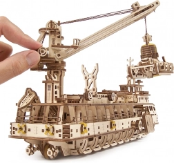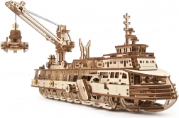Az UGEARS oceanográfiai kutatóhajó mechanikus modellje precíz fa építőkészlet, amely lenyűgözi az igényes alkotókat és gyűjtőket. A 575 precízen kivágott alkatrésznek és a magas nehézségi szintnek köszönhetően intenzív építési élményt nyújt, a végeredmény pedig valóban életre kel – a látható mechanikai részeknek hála valós időben figyelheti a hajtás működését.