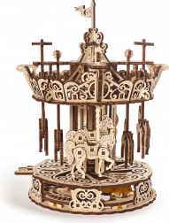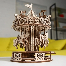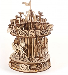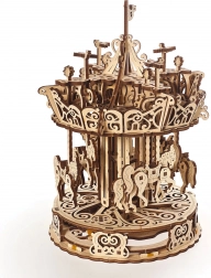 Az ornamentikus lézergravírozás, a természetes fa és a klasszikus körhinta motívum figyelemfelkeltő díszévé teszi a vitrineknek vagy a gyerekszobának.