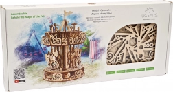 Szerezzen örömet magának egy elegáns, minőségi rétegelt lemezből készült körhintával, amely a nosztalgiát okos mechanikával ötvözi. A gumis felhúzó hajtásnak köszönhetően a középső oszlop és a tető ellentétes irányba forog, ezáltal nagy sebesség optikai illúzióját kelti. A lovacskák finoman emelkednek és süllyednek, a körhinta felett pedig apró madarak köröznek – mindez a nyitott dizájnnak hála szépen látható.