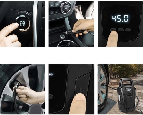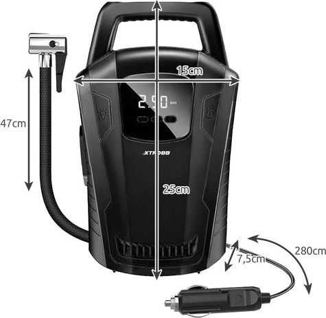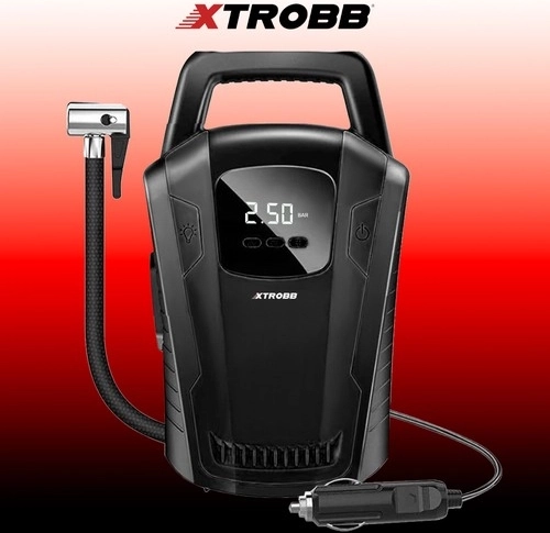 Tartsa megfelelő szinten a gumiabroncsnyomást a nagyobb biztonság, hosszabb élettartam és alacsonyabb üzemanyag‑fogyasztás érdekében. Ez a hordozható XTROBB 12 V kompresszor elektronikus, LCD-s manométerrel rendelkezik, amely PSI és BAR egységekben jeleníti meg a nyomást, valamint Auto‑Stop funkcióval – a beállított érték elérésekor automatikusan kikapcsol. Az integrált LED lámpa megkönnyíti a munkát szürkületben és éjszaka is.