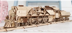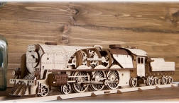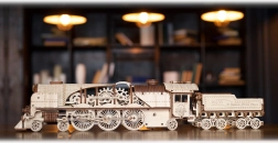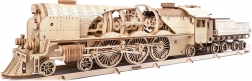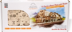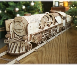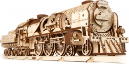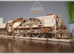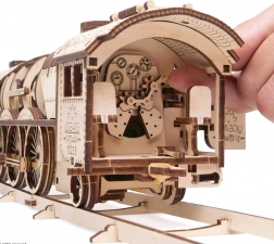 Az UGEARS V-Express egy kivételes, igényeseknek szánt fa építőkészlet, amely a klasszikus vasút varázsát okos mechanikával ötvözi. A mozdony „lecsupaszított” burkolata lehetővé teszi a hajtómű, a fogaskerekek és a könyökkar-mechanizmus működésének megfigyelését. A felhúzható motor révén a modell valóban elindul, és valósághű vezetési élményt kínál, beleértve az üresjáratot és a hátramenetet.