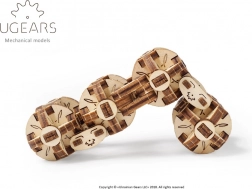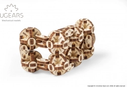 A Ugears Flexi kocka egy egyedi, steampunk által ihletett mechanikus 3D modell. Nyolc egymással összekapcsolt gömbcsukló teszi lehetővé a folyamatos hajlítást és átforgatást, így könnyedén hozhat létre különféle geometriai formákat – a téglalaptól a kompakt 3D kockáig. Minden gömb egy minimechanizmus, hat szegmensből, mozgó csuklókkal összekapcsolva.