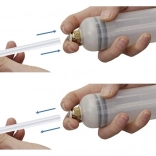 A szívó speciális dugattyúval rendelkezik, amely vákuumot képez a folyadékok hatékony szívásához. A légtelenítési rendszer biztosítja a tiszta és biztonságos használatot, míg a mellékelt dugók megakadályozzák a tartalom szivárgását. Tartós anyagkeverékből készült, ez a szívó hosszú távú megbízhatóságot garantál.