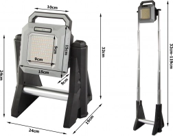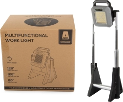 Tölthető LED teleszkópos reflektor állítható fényerősséggel 750 és 3000 lumen között, ideális raktárak, műhelyek, udvarok vagy kirándulások megvilágítására. Tartós, hordozható és praktikus.