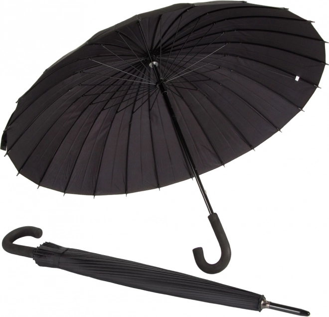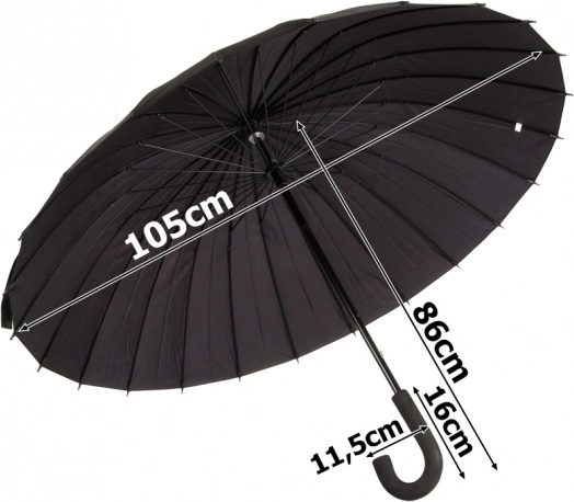 Olyan esernyőt keres, amely erős esőt és széllökéseket is gond nélkül bír, miközben elegáns marad? Ez a nagy fekete esernyő ötvözi a minőségi kivitelezést, a strapabíró szerkezetet és az időtálló dizájnt. A 24 rugalmas, polikarbonát szálakból készült küllőnek köszönhetően stabil és megbízható.