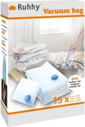 A zsákok jelentős mértékben csökkentik a tárolt tárgyak térfogatát akár 80%-kal, így megkönnyítik a szervezést és a helytakarékosságot.