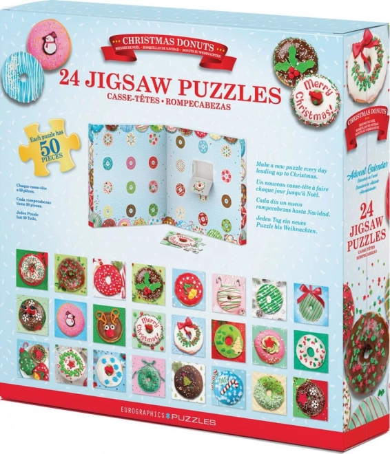 Élvezze minden decemberi napot egy új kirakóval. Az EUROGRAPHICS adventi naptár 24 különböző kirakót kínál bájos karácsonyi motívumokkal, mindegyik 50 darabból. A praktikus, négyzetes 12,5 × 12,5 cm méretnek köszönhetően a képek gyorsan kirakhatók, és tökéletesek a napi rituáléhoz.